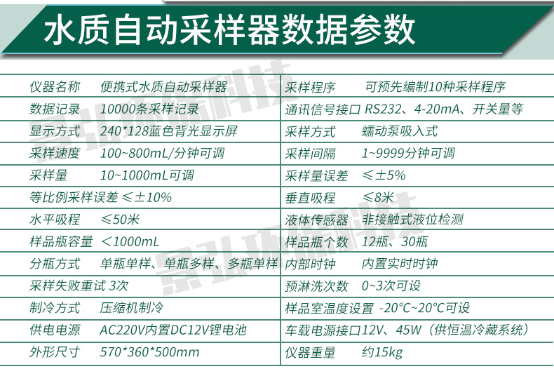 儀器符合中國(guó)環(huán)境保護(hù)部HJ/T 372-2007《水質(zhì)自動(dòng)采樣器技術(shù)要求及檢測(cè)方法》,是集流量測(cè)量、水樣采集,自動(dòng)分瓶、恒溫冷藏一體的多功能環(huán)境監(jiān)測(cè)儀器,具有體積小,方便移動(dòng)、操作簡(jiǎn)捷、環(huán)保節(jié)能等特點(diǎn)。適用于各*環(huán)境監(jiān)測(cè)站、監(jiān)察機(jī)構(gòu)、科研院所、水務(wù)、市政及污水處理廠,對(duì)工業(yè)污染源排放口、江、河、湖、海等水樣進(jìn)行自動(dòng)采樣。